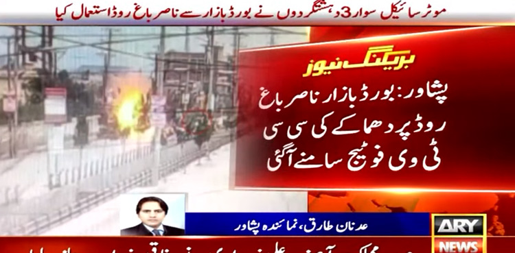 The Close Circuit Television (CCTV) footage of a blast at Peshawar’s Board Bazar emerged on Monday, ARY News reported.