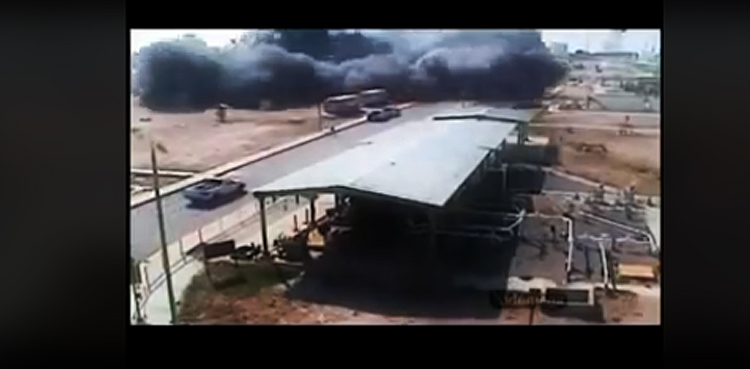 The one-minute 44-second video was published here in a Facebook post on September 17, 2019, with a caption saying: “Saudi Aramco Refinery Blast.”