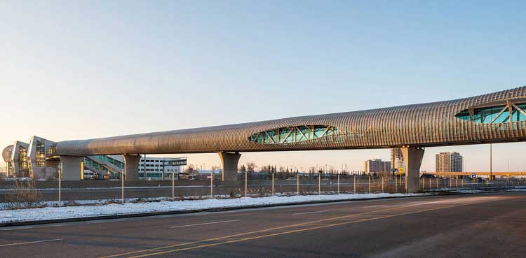 A foreign news agency reported that the structure connects Pickering Go Train station to Pickering Town Center and spreads to 14 lanes of Highway 40, six railway tracks, and a whole city road.