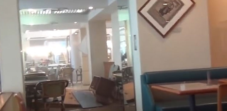 Some of the furniture inside the eatery can also be seen damaged with debris scattered around the floor.