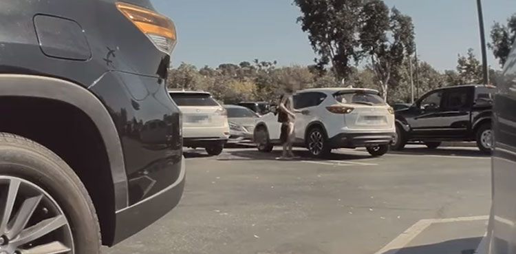Police said a confrontation between the man and the child’s father, who was also inside the car, got physical. A crowd gathered as people intervened, separating them until cops from the Vista Sheriff’s Station reached the spot.