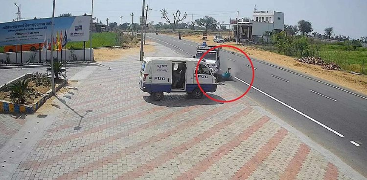 From the outset, it appears the fault of the two-wheeler rider that led to the accident. The two-wheeler did not stop till the incoming vehicle passed but sped across the road and was hit by the mini truck.