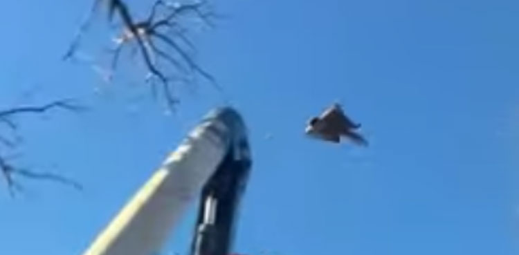 A video of a squirrel flying away from the dying oak of a tree in the Nebraska state of the United States has gone viral.