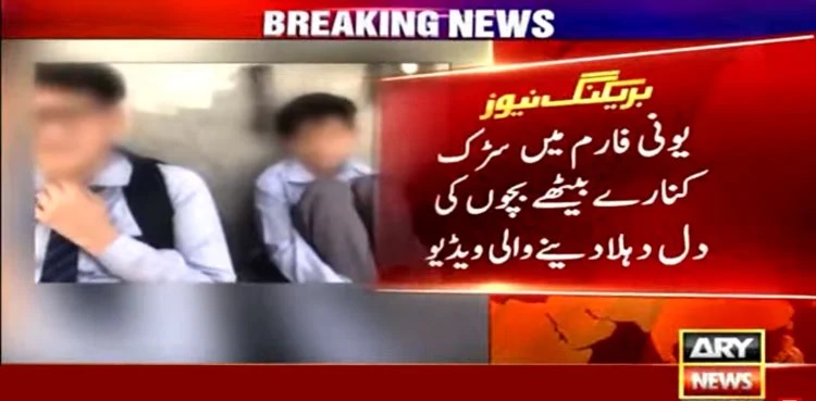 In the video available with ARY News, the two brothers can be seen sitting roadside in their school uniforms. Upon being asked, the children said the administration of the school has expelled them as their father failed to pay their fees for three months.