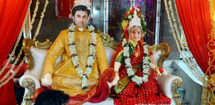 A day earlier than the actual Alia-Ranbir wedding, a bunch of die-hard fans at ‘Ballygunge 21 Pally cultural club’ in Kolkata got the two married as per the Bengali wedding rituals. They dressed up life-size dolls of ‘Brahmastra’ actors as bride and groom before performing the nuptials as per the Bengali traditions, pictures of the same have taken social media by storm.