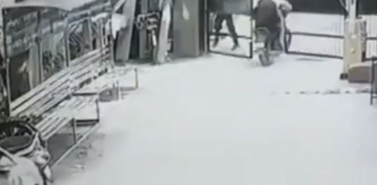 Viral Video: Bike thieves crash into gate closed by alert guard