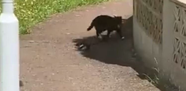 A funny video of a bird stalking a cat in James Bond style is going viral across social media platforms.