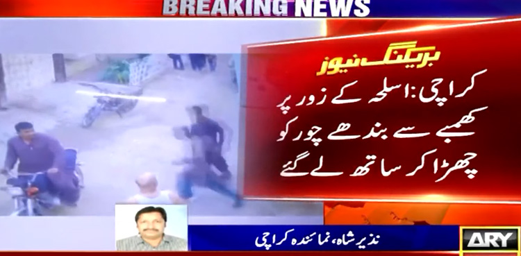 KARACHI: The robber who was caught by the citizens of Karachi’s Malir area was rescued by his accomplice at gunpoint, ARY News reported on Saturday.