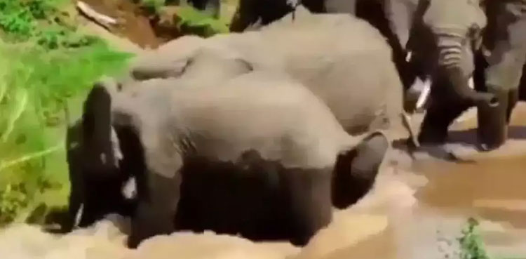 Viral: Elephants come together to save calf from strong river water