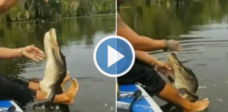 A video of a fearless man feeding meat to an alligator is going viral across social media platforms.