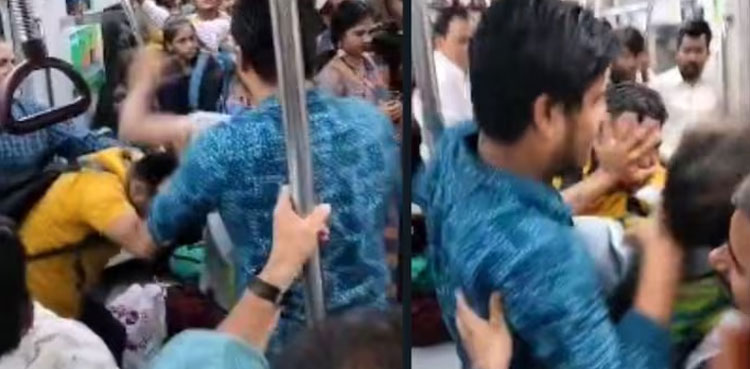 According to details, the incident took place on a Delhi Metro train, wherein two backpack-wearing passengers engaged in an ugly fight.