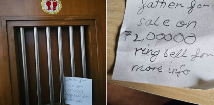 The photo of a handwritten poster was shared on X by a user @Malavtweets which read, “father for sale on ₹ 2,00000 ring bell for more info”.