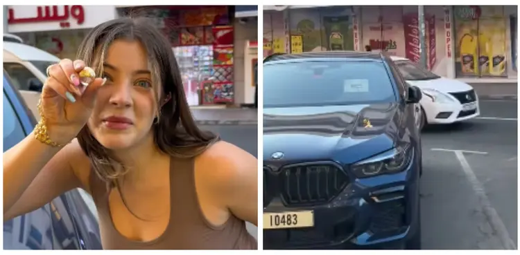 The viral video of the experiment shows the female influencer leaving gold on top of a car on a busy road in Dubai.