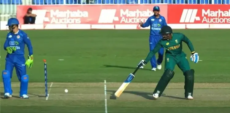 The dramatic incident occurred on the last ball of the 10th over when Phehlukwayo survived an LBW call on Allah Ghazanfar’s delivery and went out of the crease with the ball still in play.