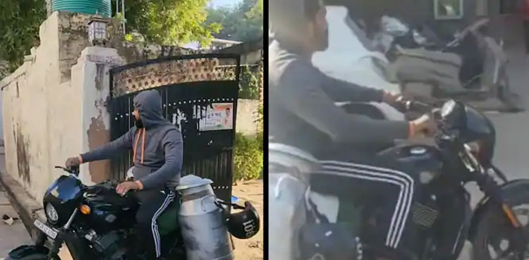 Amit Bhadana shared the viral video on Instagram. It showed him riding his Harley-Davidson with milk containers on the bike’s on either side in India.