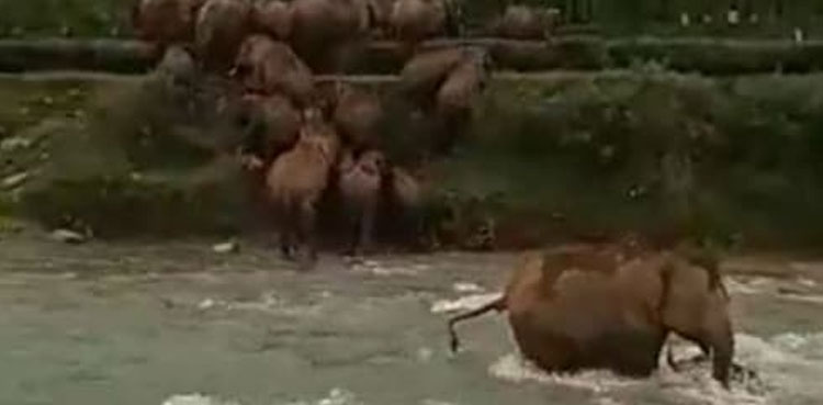 In a now-viral video shared by an Indian Forest Officer, a herd of elephants can be seen crossing a river to go into the forest. However, a mother and her calf left behind as the baby starts drifting away due to the fast-flowing water.