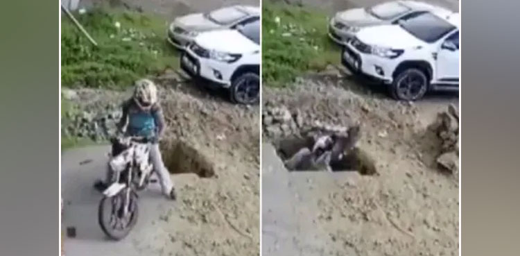 Viral: Motorcyclist falls into giant pothole with his two-wheeler