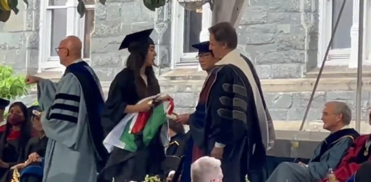 @georgetownsfs graduation is back to an in-person ceremony so why not a quick iconic protest moment involving a Palestinian student and @SecBlinken pic.twitter.com/N1Z73LuZbE
