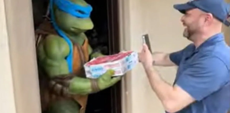 Watch: Pizza delivery guy surprised by 'Ninja Turtles'