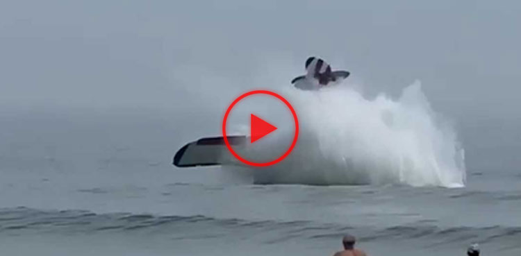 A scary video of a small plane crashing off the shore of a beach in the United States is going viral on social media.