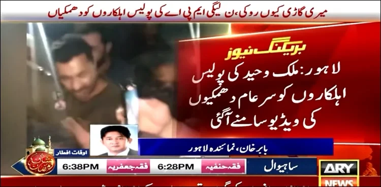 Video footage showed MPA Malik Waheed threatening the Baghbanpura police station officials and continuously asking them to apologise for stopping and asking for a search of his vehicle.