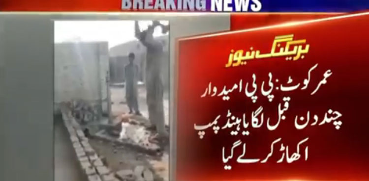 According to details, the PPP candidate from Chhor Town in Umerkot District uprooted the hand pump – installed during the election campaign for local government polls.