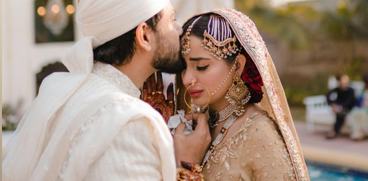 Many showbiz stars such as Hania Amir, Sarah Khan, Rubab Hashim, Minal Khan and Kinza Hashim wished them a happy married life.