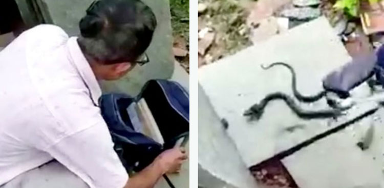 A video of a teacher taking out a snake from inside a schoolgirl’s bag is going viral on the micro-blogging social media application Twitter.