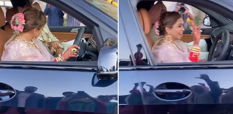 The groom was seen explaining the details about the vehicle and later she confidently drove the car by waving her hand before the guest to say goodbye.