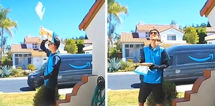 Hilarious video: Delivery boy tosses package onto roof while trying to swat a fly