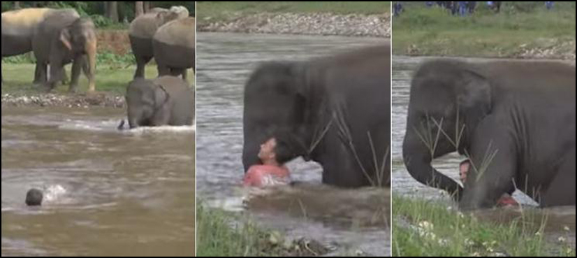 Footage captured at the Elephant Nature Park in Northern Thailand shows the trainer swimming in water. Kham Lha, in the meantime, misunderstands and thinks Darrick needs help. So the elephant rushes to rescue her human, almost as if it were a reflex action.