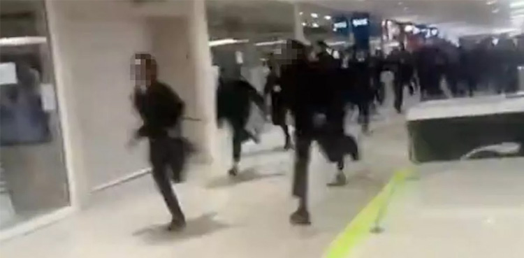 In a bizarre video that went viral online, chaos erupted when hundreds of screaming children stormed a shopping centre and clashed with security.