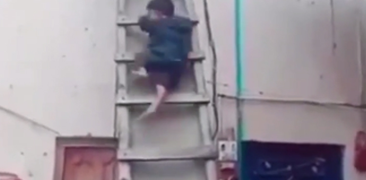 Viral video: Little boy climbs down ladder like a ninja