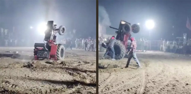 Sukhmandeep Singh, the performer, attempted to raise the front wheels of the tractor while the engine was still running.