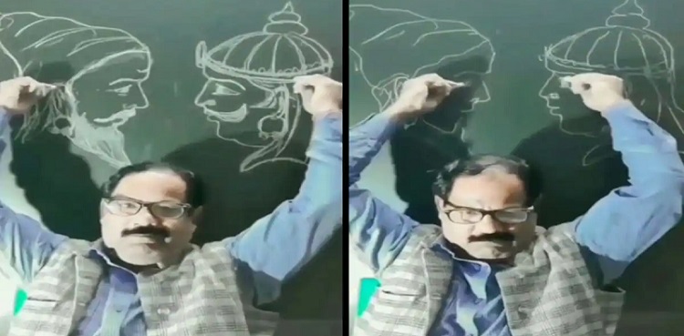 A video of an Indian man drawing portraits with both his hands without looking at the blackboard is going viral on social media.