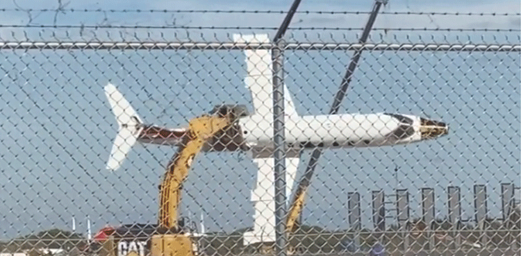 A video of an excavator being used to take a small aircraft that was about to be scrapped for a joyride one last time has gone viral on social media platforms.