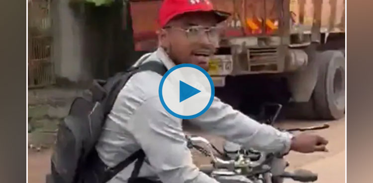 The 28-second video showed him riding the two-wheeler with both legs on one side. He was supporting himself with his one hand.