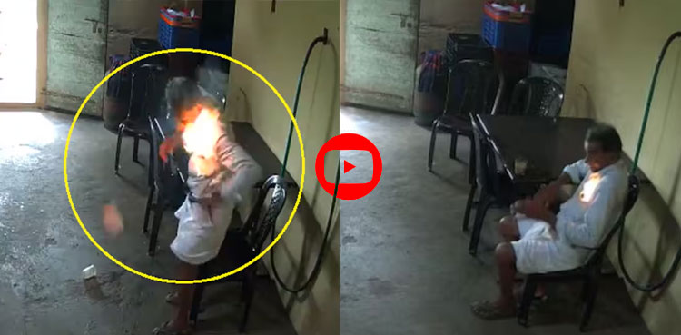 Viral Video: Narrow escape for elderly man as mobile phone explodes