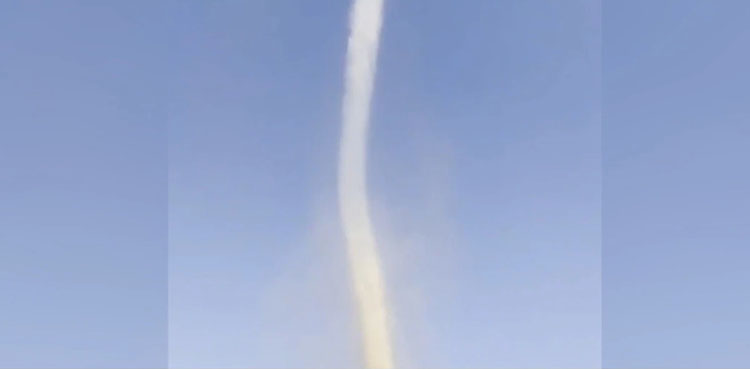 The viral video shows the massive tornado rising from the ground, while several onlookers can be seen capturing the moment.