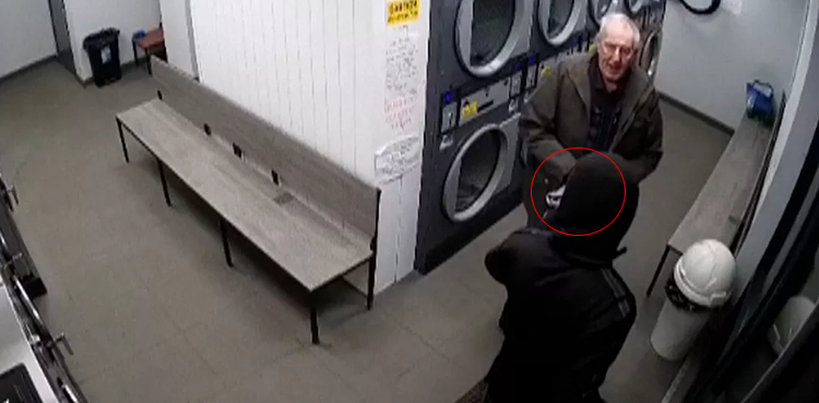 In the viral video, Ron Croker can be seen drying his clothes at a laundromat when a masked man burst in, demanding money. Instead of panicking, Mr. Croker, a retired construction worker, stood his ground.