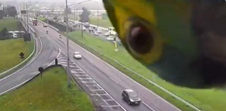 A viral video shows a parrot sitting on top of a surveillance camera on a highway in Brazil and supervising the traffic.