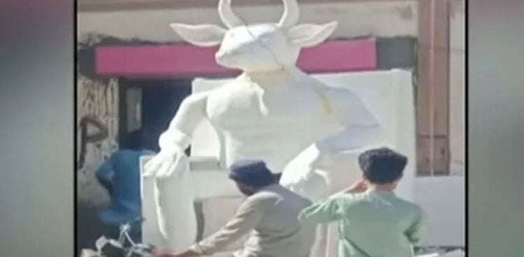 A “Baal” statue caused alarm in the Mehran Town area of Karachi, prompting objections from residents after a video of the structure circulated on social media.