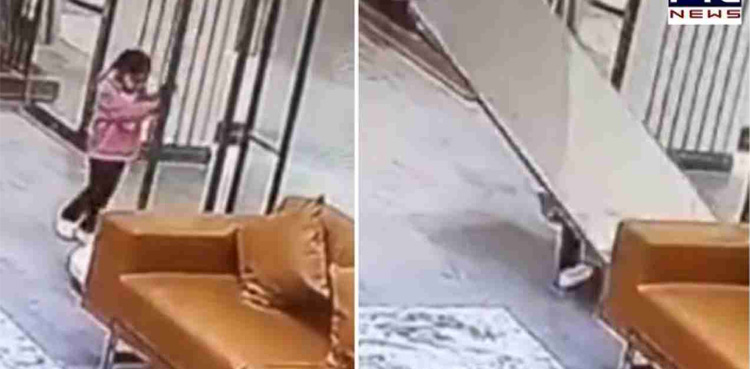 The incident was captured on CCTV and the video is now viral. The clip shows the little girl holding the door’s handle when the entire structure falls on her.
