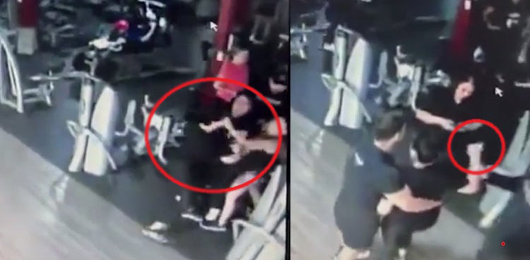 The CCTV footage captured the moment when a furious female bit another woman’s finger off over using the exercise machine for too long.