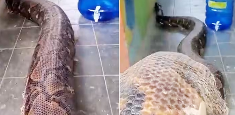 A video shared on social media shows the world’s largest, longest, and biggest snake that has eaten adult humans.