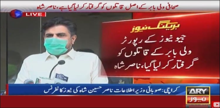 Addressing a process conference, Karachi police chief Nasir Shah claimed to have arrested the suspect who had opened fire on Geo News reporter Wali Khan Baber on 13th of January 2011 in Liaquatabad.
