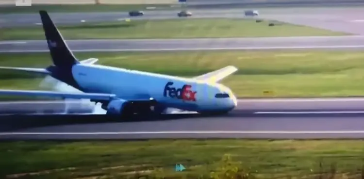 Video footage showed sparks flying and smoke rising as the front end of the plane, belonging to FedEx Airlines, scraped along the runway.