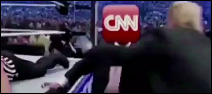 The video appeared to be a modified version of a 2007 appearance by Trump at World Wrestling Entertainment’s WrestleMania 23 promotion, in which Trump “takes down” WWE Chairman Vince McMahon. In Sunday’s video, McMahon’s head has been replaced with the CNN logo.