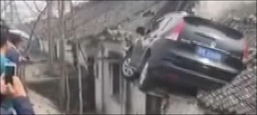 BEIJING: A driver in China survived a horrific crash after it lost control of the vehicle and crashed onto the roof of nearby home.