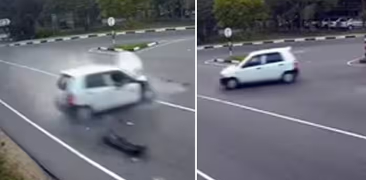 What could be the possible explanation behind this phenomenon? From the colour of the numberplate, it can be assumed that it is a cab and this accident was caused by the curse of a disgruntled, annoyed customer.
